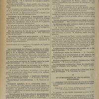 1551 - Page 1565 - Sociétés savantes. Société de biologie. (Séance du 10 novembre 1923). Des effets observés à la suite de l'inoculation du virus herpétique dans la glande surrénale (sensibilité de cette glande vis-à-vis du virus et son immunité). MM. P. Teissier, P. Gastinel et G. Reilly / Les intradermo-réactions communes à l'aminoarsenophénol. M. P. Chevallier / Election / (Séance du 17 novembre 1923). Encephalit ozoon cuniculi, agent étiologique de l'encéphalite épizootique du lapin. MM. C. Levaditi, E. Nicolau, R. Schoen / (Séance du 24 novembre 1923). Sur la sensibilisation tuberculinique comparée des lapins inoculés avec des bacilles tuberculeux morts ou avec des bacilles tuberculeux avirulents. MM. A. Boquet et L. Nègre / Relations entre les métaux alcalino-terreux et l'acidité urinaire. M. L. Lescoeur et Mlle L. Moquet... / Bacilles morts et réactions tuberculiniques. M. E. Coulaud / Etude clinique de la perspiration de l'eau chez l'adulte. M. Jean Meyer / Les limites de sensibilité de la réaction de Bordet-Wasermann. Dispositifs d'expérience pour l'étude du seuil de la réaction. M. Maurice Renaud