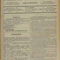 1559 - Page 1573 - Sommaire / Informations. Hôpitaux de Paris. Concours de l'internat / Prix de l'internat en médecine / Prix Civiale / Faculté de médecine de Paris. Concours pour le clinicat / Clinique des maladies nerveuses / Collège de France / Ministère de la marine / Ministère de l'hygiène / La préparation militaire des élèves du service de santé militaire / Union fédérative des médecins de réserve et de territoriale
