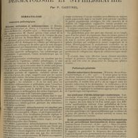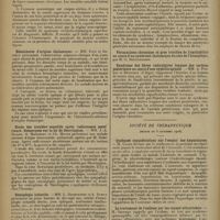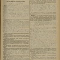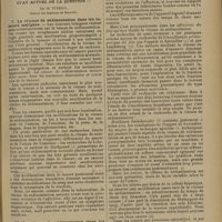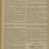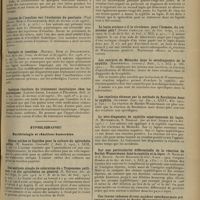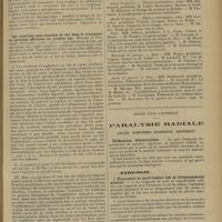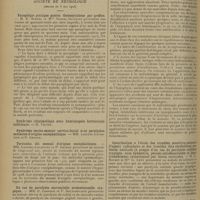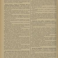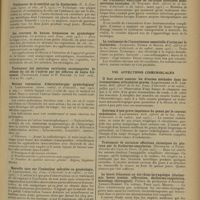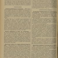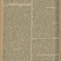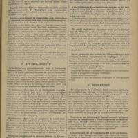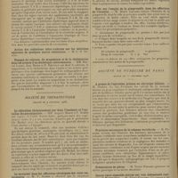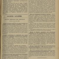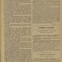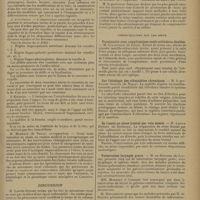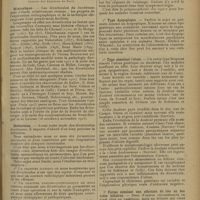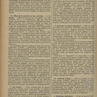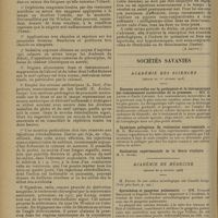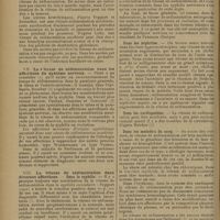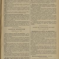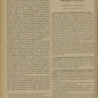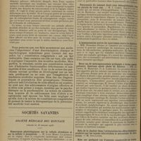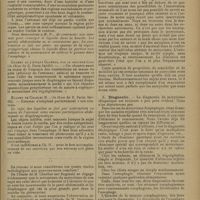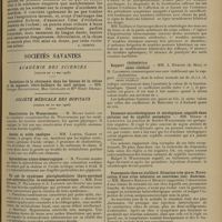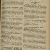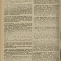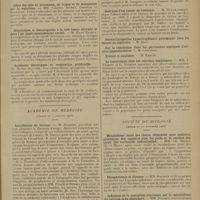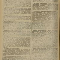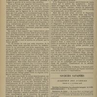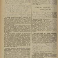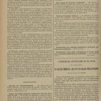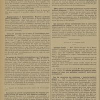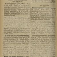 0147 - Page 139 - Sociétés savantes. Société de neurologie. (Séance du 7 janvier 1926). Persistance de la sensibilité cutanée et profonde après radicotomie postérieure pour causalgie. MM. Sicard, Haguenau et Lichtwitz / Réflexes pendulaires et hypertoniques. MM. Ch. Foix et Julien Marie / Un nouveau cas de vérification de nystagmus du voile, symptôme de la calotte pédonculo-protubérantielle. MM. Foix et Tinel / Palilalie syllabique. Sclérose intracérébrale en foyers disséminés. MM. Ch. Foix et J.-A. Chavany / Syndromes neuro-psychiques des colites alcalines. MM. P. Béhague et A. Mathieu de Fossey / Société de biologie. (Séance du 5 décembre 1925). Diabète insipide par encéphalite infundibulo-tubérienne d'origine syphilitique. MM. L. Babonneix et J. Lhermitte / Identité d'action cardio-vasculaire du principe actif du genêt et de l'adrénaline. MM. H. Busquet et Ch. Vischniac / La théorie de l'autolyse transmissible et les objections de d'Hérelle. M. J. Bordet / De l'action de quelques agents physiques et chimiques sur la floculation des sérums antiméningococciques. MM. R. Dujarric de la Rivière et Et. Roux / Syphilis et tuberculose. MM. A. Vernes, R. Bricq et A. Gazer