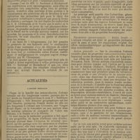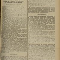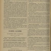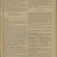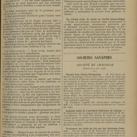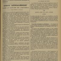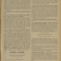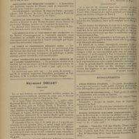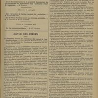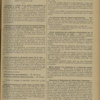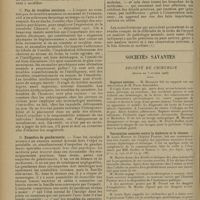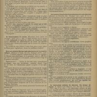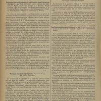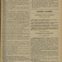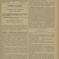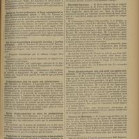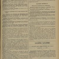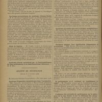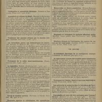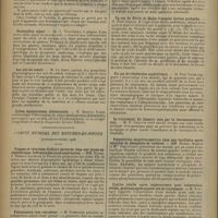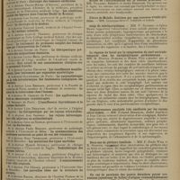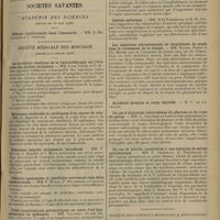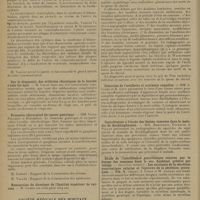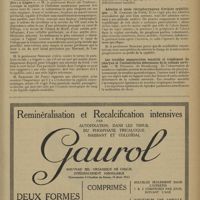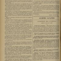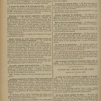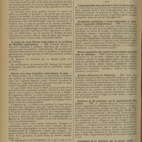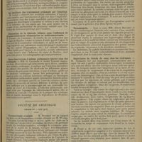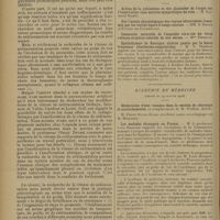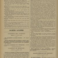 0051 - Page 43 - Sociétés savantes. Académie des sciences. (Séance du 28 décembre 1925). Effets des sels de zirconium, de titane et de manganèse sur la nutrition. MM. Charles Richet, Gardner et Goodbody / Hématolyse et hématopoièse à la très haute altitude et dans l'air expérimentalement raréfié. M. Raoul Bayeux / Accidents électriques et respiration artificielle. M. Stefan Jelliner / Académie de médecine. (Séance du 5 janvier 1926). Installation du bureau. M. Barrier / Guérison d'un cancer de l'estomac. M. Hayem / La tuberculose chez les ouvriers boulangers. MM. J. Parisot et G. Richard / Société de biologie. (Séance du 14 novembre 1925). Métabolisme azoté des chiens alimentés sans matières protéiques. Ses rapports avec les poids et la surface des corps. Ses variations individuelles. MM. Ch. Richet fils et Minet / Phosphatémie et fibrome. MM. Dalsace et Guillaumon / Influence de la castration ovarienne sur le métabolisme du calcium et du phosphore. MM. Dalsace et Guillaumon / Action des rayonnements de l'émanation du radium sur le virus de la neurovaccine. MM. de Mutermilch et Ferront