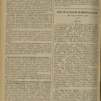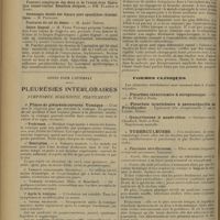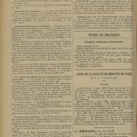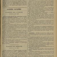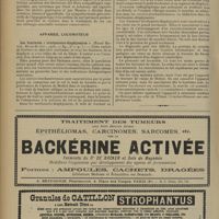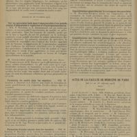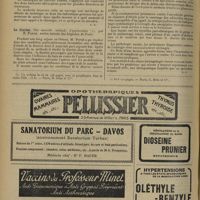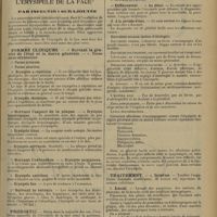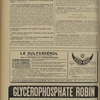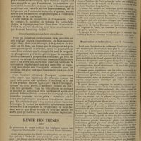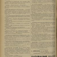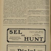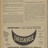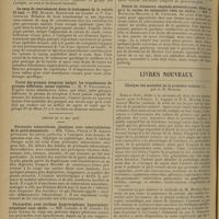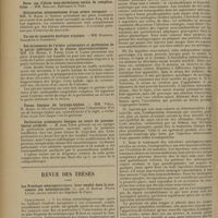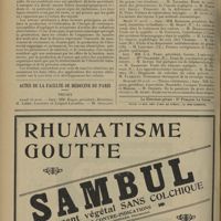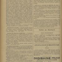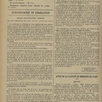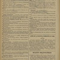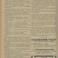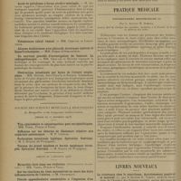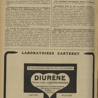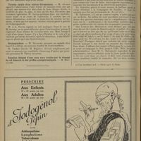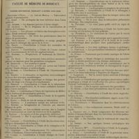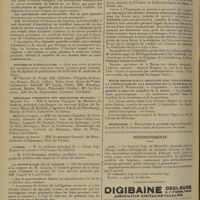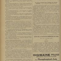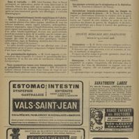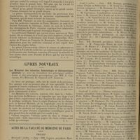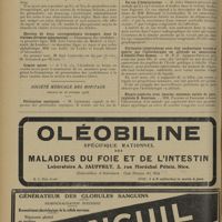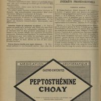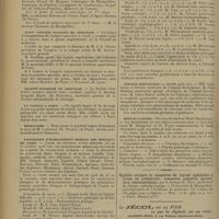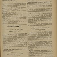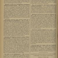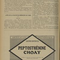 0022 - Page 14 - Sociétés savantes. Société médicale des hôpitaux. (Séance du 18 décembre 1925). Pneumothorax double simultané. M. Dénéchaux / De la tolérance cardio-vasculaire à l'égard de l'adrénaline. M. A. Ricaldoni..., un cas récent de MM. Etienne, Richard et Claude / Tuberculose bilatérale traitée par la phrénicectomie droite et le pneumothorax gauche. M. Jullien..., par M. Rist / Société de médecine de Paris (séance du 13 novembre 1925). Quelques difficultés dans le diagnostic de la hernie crurale étranglée chez la femme. M. J. Pescher / Diagnostic de pathologie vertébrale particulièrement complexe. M. Roederer / Société anatomo-clinique de Toulouse (séance du 14 novembre 1925). Le diagnostic de la lymphogranulomatose maligne : présentation de malade et de coupes histologiques. MM. Jean Tapie, A. Lyon et Favre / Fractures isolées des apophyses transverses des vertèbres lombaires. M. Boularan / Pseudo-cancer du rectum au cours de la curiéthérapie des affections utérines. MM. Ducuing et Laporte /Actes de la Faculté de médecine de Paris. Thèses / Bulletin bibliographique