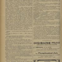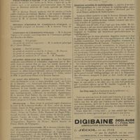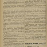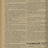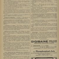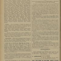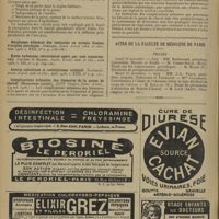 0106 - Page 98 - Informations. Gouvernement général de l'Algérie / Comité national de défense contre la tuberculose / Section technique de l'artillerie / Nécrologie / Cours de la Faculté de médecine de Paris. Laboratoire d'anatomie pathologique / Asile clinique. Conférences de psychanalyse / Clinique oto-rhino-laryngologique / Chemins de fer de Paris à Lyon et à la Méditerranée. Relations rapides entre la métropole et l'Algérie via Marseille / Les stations d'hiver P.-L.-M. / Notes de pratique. Diabète arthritique