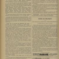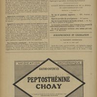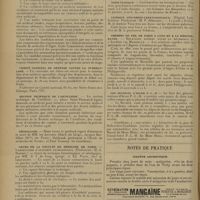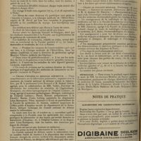 0090 - Page 82 - Informations. Commission supérieure consultative d'hygiène et d'épidémiologie militaires / Marine / Hommage au Professeur Sebileau / Propagande contre nos stations thermales / Nécrologie / Cours de la Faculté de médecine de Paris. Laboratoire de bactériologie / Notes de pratique. Surcharge graisseuse du coeur / Renseignements