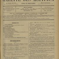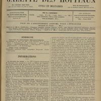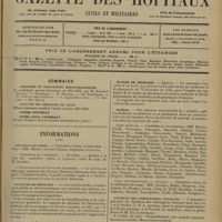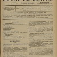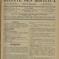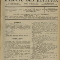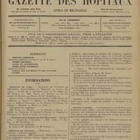 - Gazette des hôpitaux civils et militaires (Lancette française), 1828-1947 ; table: 1887 à 1914