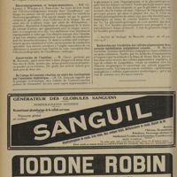 0083 - Page 75 - Sociétés savantes. Académie de médecine. (Séance du 12 janvier 1926). L'examen médical des employés de chemin de fer affectés à des emplois intéressant la sécurité publique. M. Guillain / Rapport de la commission des sérums. M. Carnot / Société des sciences médicales et biologiques de Montpellier et du Languedoc méditerranéen. (Séance du 13 novembre 1925). La fièvre ondulante en France. Distribution géographique. Epidémiologique. Prophylaxie. MM. Lisbonne, Aublani, Lafenetre / (Séance du 20 novembre 1925). L'extension au zénith (technique de E. Etienne). M. E. Etienne / Traitement par l'opothérapie des douleurs survenues dans les hanches congénitalement luxées irréductibles. M. E. Etienne / Peut-on mettre en évidence la présence de polypeptides dans le sang. MM. Cristol et Puech0083 - Page 75 - Sociétés savantes. Académie de médecine. (Séance du 12 janvier 1926). L'examen médical des employés de chemin de fer affectés à des emplois intéressant la sécurité publique. M. Guillain / Rapport de la commission des sérums. M. Carnot / Société des sciences médicales et biologiques de Montpellier et du Languedoc méditerranéen. (Séance du 13 novembre 1925). La fièvre ondulante en France. Distribution géographique. Epidémiologique. Prophylaxie. MM. Lisbonne, Aublani, Lafenetre / (Séance du 20 novembre 1925). L'extension au zénith (technique de E. Etienne). M. E. Etienne / Traitement par l'opothérapie des douleurs survenues dans les hanches congénitalement luxées irréductibles. M. E. Etienne / Peut-on mettre en évidence la présence de polypeptides dans le sang. MM. Cristol et Puech