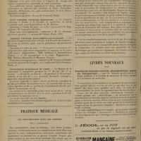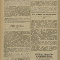 0068 - Page 60 - Livres nouveaux. L'ionotérapie électrique [2e édition], par Delherm et Laquerrière. [Morel-Kahn] / Manuel du médecin expert. Accidents du travail et maladies. Consultations chirurgicales, médicales et barèmes / Documents cliniques sur le stovarsol 1922-1926 / Notes pour l'internat. Diagnostic des ascites