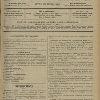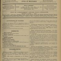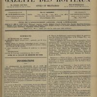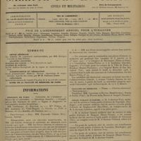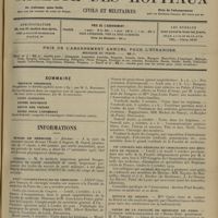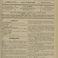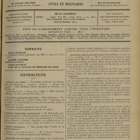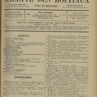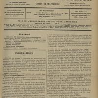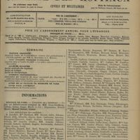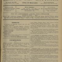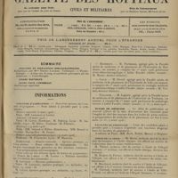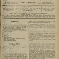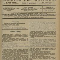 0073 - Page 65 - Sommaire / Informations. Hôpitaux de Paris / Hôpitaux de province. Montpellier / Écoles de médecine. Rouen / Comité consultatif de l'enseignement supérieur / Faculté des sciences de Bordeaux / Légion d'honneur. Marine / Affaires étrangères