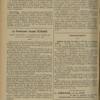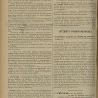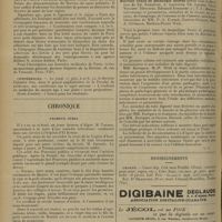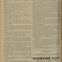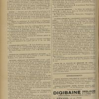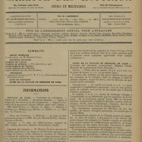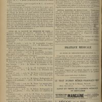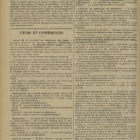 0058 - Page 50 - Informations. Guerre. Service de santé / Marine / Nécrologie / Cours de la Faculté de médecine de Paris. Clinique médicale de l'Hôtel-Dieu / École de psychologie. Ordre du jour / Chronique. Leçon inaugurale de M. le Professeur F. Bezançon à la clinique médicale de Saint-Antoine / Renseignements