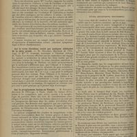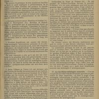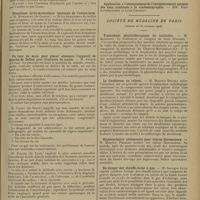 0052 - Page 44 - Sociétés savantes. Société de biologie. (Séance du 14 novembre 1925). Action des rayonnements de l'émanation du radium sur le virus de la neurovaccine. MM. de Mutermilch et Ferront / Réaction de Meinicke et syphilis. MM. Mutermilch / Hypoépinéphrie et dysinsulinisme. Nouveau syndrome pleuro-glandulaire. MM. Gougerot et Peyre / Action du pancréas sur le tonus de l'excitabilité pneumogastrique. MM. Garrelon, Santenoise et Legrand / La mesure de l'équilibre histohydrique par l'intradermo-réaction de l'eau chlorurée sodique. MM. P. Chevallier et Stiffel / Variations du pouvoir anaphylactisant de certaines protéines suivant les stades de leur digestion artificielle. MM. Fernand Arloing et L. Langeron / Essais d'atténuation par la formolisation du pouvoir anaphylactisant d'une peptone de caséine. MM. Fernand et L. Langeron / Effets moteurs et sensitifs produits par certaines courants de haute fréquence. MM. J. Cluzet et A. Chevallier / Les injections d'huile cholestérinée dans la tuberculose expérimentale du cobaye. M. L. Jullien / (Séance du 21 novembre 1925). Azotémie basale. MM. Charles Richet et Minet / Sur les caractères des symbioses « bactérie-bactériophages ». MM. F. d'Hérelle et P. Hauduroy