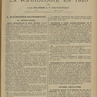 0020 - Page 12 - Sociétés savantes. Académie de médecine. (Séance du 29 décembre 1925). Le syndrome d'Adams-Stokes et sa pathogénie. M. E. Géraudel / Sur le diagnostic des arthrites chroniques de la hanche à tous les âges. M. Calot / Pronostic chirurgical du cancer gastrique. MM. Victor Pauchet et Hirchberg / Nomination du directeur de l'Institut supérieur de vaccine. M. Camus / Société médicale des hôpitaux. (Séance du 18 décembre 1925). Chancre mou et vaccin de Charles Nicolle. MM. Laederich et Weill-Spire / La syphilis spinale inférieure avec xantochromie du liquide céphalo-rachidien. MM. Georges Guillain, P. Léchelle et N. Péron / Infarctus de l'oreillette et arythmie complète. MM. A. Clerc et R. Lévy / Contribution à l'étude des lésions osseuses dans la maladie de Recklinghausen. MM. Babonneix, Touraine et Pollet / Etude de l'insuffisance pancréatique externe par le dosage des enzymes dans le suc duodénal prélevé par tubage. - Deuxième mémoire : Les excitants de la sécrétion pancréatique externe et l'épreuve de la sécrétion provoquée. MM. M. Chiray, J. Lebon et W. Gozlan / Pneumothorax double simultané. M. Dénéchaux