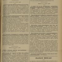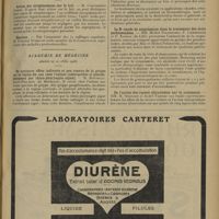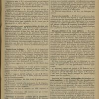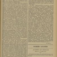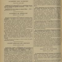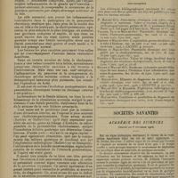 0115 - Page 107 - Sociétés savantes. Académie de médecine. (Séance du 19 janvier 1926). Conservation du poisson par le froid. M. le Professeur Desgrez, une note de MM. A Loir et Legangneux... / Société de chirurgie. (Séance du 6 janvier 1926). Anus provisoires. MM. Anselme Schwartz et Alglave, à propos du rapport de M. Cunéo sur un travail de M. Pauchet / La péricardotomie. M. Duguet, à propos du rapport de M. Bazy / Thoracotomie précordiale. M. Hartmann, sur un travail de MM. Bergeret et Théodoresco / Tumeurs à myéloplaxes et kystes des os. M. Tavernier... / Election. M. Gernez / (Séance du 13 janvier 1926). L'opération de Brauer dans le traitement des péricardites adhésives. M. Grégoire, M. Hartmann / Hernie diaphragmatique, blessure de guerre, thoracotomie. M. Roux-Berger, une seconde observation de M. Pérard / Malformation carpienne. Immobilisation prolongée, accidents consécutifs. M. Mouchet, sur une observation de M. Lheureux... / Résection du genou. M. Fredet / Section des réseaux communiquants. M. Louis Bazy / Fibrome de la paume de la main. M. Auvray / Election