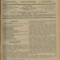 0089 - Page 81 - Sommaire / Informations. Concours d'agrégation / Facultés de médecine. Paris / Écoles de médecine. Besançon / Légion d'honneur. Affaires étrangères / Guerre / Médailles d'honneur des épidémies. Médaille d'or / Médailles de vermeil / Médailles d'argent / Médailles de bronze / Mentions honorables / Guerre / Commission supérieure consultative d'hygiène et d'épidémiologie militaires