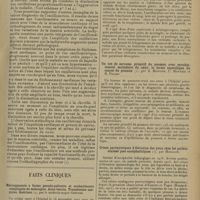 0095 - Page 87 - Analyses et indications bibliographiques. Pédiatrie sous la direction de M. L. Babonneix... II. Affections respiratoires. L'insuffisance respiratoire chez l'enfant. (R. Lereboullet. Paris méd...). [E. Azerad] / Les causes des broncho-pneumonies prolongées chez les nourrissons. Conclusions thérapeutiques. (Ribadeau-Dumas et Lacomme. Semaine des hôpit. de Paris...). [E. Azerad] / Kyste hydatique du poumon chez l'enfant. (L. Morquio. Conférence faite aux enfants-malades...). [L. Babonneix]
