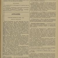 0065 - Page 57 - Actualités. Biologie de la morale [J. Laumonier] / Sociétés savantes. Société de chirurgie. (Séance du 9 décembre 1925). Réfection du vagin. M. Duval, sur la communication faite par M. Baumgartner / Fracture bilatérale. M. Auvray, sur une observation de M. Roederer / Fracture du trapèze. M. Auvray, un second rapport sur un cas présenté par MM. Richard et Favre / Cancer du côlon. M. Hartmann, sur un travail de M. Pauchet / Luxation du coude. M. Rouvillois, une observation de M. Plisson / Vésicule biliaire perforée. M. Lapointe, une observation de M. Bonnet / Volvulus du côlon. M. Kuss, deux cas adressés par M. Gruget... / Fracture bi-malléolaire. Consolidation vicieuse. Astragalectomie. Guérison. M. Alglave, sur une observation de M. Courty... / (Séance du 16 décembre 1925). Péricardotomie dans la péricardite. M. Louis Bazy, sur une observation de MM. Rieux et Plisson / Sténose pylorique par compression ganglionnaire. M. Basset, sur une observation à M. Tasso Astariadès / Ostéochondrite coxo-fémorale. M. Mouchet, une observation de M. Roederer