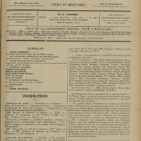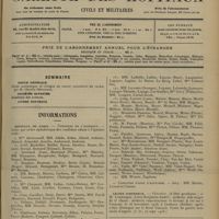 0105 - Page 97 - Sommaire / Informations. Concours d'agrégation / Légion d'honneur. Ministère de l'intérieur / Colonies / Hygiène / Préfecture de la Seine / Guerre / Académie royale de médecine de Belgique / Gouvernement général de l'Algérie