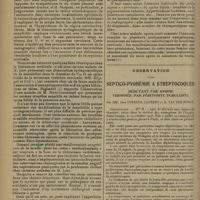 1552 - Page 1544 - Observation d'une septico-pyohémie à streptocoques débutant par angine terminée par péritonite purulente ; par MM. Jean Ferrand, Laurent et H. Van Der Horst / Sociétés savantes. Société médicale des hôpitaux. (Séance du 12 novembre 1926). Kyste hydatique suppuré. MM. May et Bocage / Un cas d'encéphalite grave chez un enfant de vingt-sept mois. Guérison remontant à dix mois. MM. Denéchau, Peignaux et Fouchaud / Cinq cas d'infection aiguë à type de méningite semblant se rapporter à la névraxite. Evolution vers la guérison par le traitement salicylé pour quatre d'entre eux. M. Denéchau... / Pneumo-encéphalographie par voie lombaire. Technique nouvelle. MM. Sicard, Haguenau et Gally / Volumineux abcès du cerveau gauche douze mois après une blessure de guerre. Considérations cliniques et thérapeutiques. MM. Alajouanine et Petit-Dutaillis / Un cas de kala-azar. M. Esbach... / L'indice de désamination comme épreuve d'exploration fonctionnelle du foie. MM. Noël Fiessinger, H.-R. Olivier et M. Herbain / (Séance du 19 novembre 1926). Un cas d'encéphalite postvaccinale. M. Julien Huber / Anémie pernicieuse aplastique consécutive à des injections multiples de thorium X. MM. Laignel-Lavastine et P. George / Les injections intra-veineuses de borate de soude. MM. Loeper et Garcin / Abcès du sommet du poumon. Evolution chronique. M. Maurice Renaud / Méralgie paresthésique consécutive à un zona vaccinal. MM. M. Roch et J. Mozer...