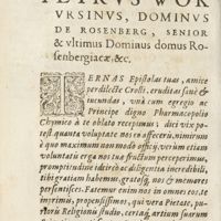 0688 - Page sans numérotation - Epistola nuncupatoria, ad illustrissimum principem ac D. D. Petrum Wok ursinum, dominum a Rosenberg, inclytae & antiquissimae Domus Rosenbergicae seniorem & ultimum, primariumque Boëmorum dynasten, bonorum studiorum omnium mecoenatem excellentissimum
