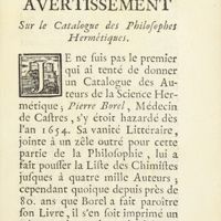 0010 - Page sans numérotation - Avertissement sur le catalogue des philosophes hermétiques