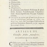 0057 - Page 28 - Article III. Chimistes arabes, manuscrits de la bibliotheque de sa majesté