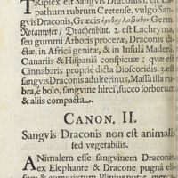 0035 - Page 2 - Canon I : Sanguis draconis triplex est / Canon II : Sanguis draconis non est animalis fed vegetabilis