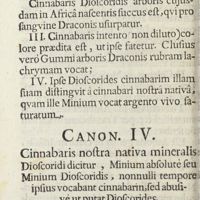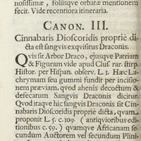0037 - Page 4 - Canon III : Cinnabaris Dioscoridis proprie dicta est sanguis exquisitus draconis