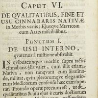 0108 - Page 75 - Caput VI : De qualitatibus, fine et usu cinnabaris nativae in morbis variis ; ejusque mistione cum aliis miscibilibus. Punctum I : De usu interno, quatenus à mistione abstrahit