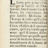 - Dissertation sur l'antimoine, dans laquelle la nature de ce mineral, & la cause de son principal effet sont clairement démontrez. Par Monsieur Lamy, docteur en medecine de la faculté de Paris. Seconde edition.