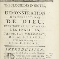 - Théologie des insectes ou Démonstration des perfections de Dieu dans tout ce qui concerne les insectes, traduit de l'allemand par M. Lesser avec des remarques de M. P. Lyonnet : tome premier