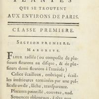 0010 - Page 1 - Plantes qui se trouvent aux environs de Paris. Classe premiere. Section premiere. Margrite