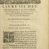 0082 - Page 25 - Livre III des paragraphes de Philippe Theophraste Paracelse. Du mal caduc, & de ses especes. Chapitre I. Paragraphe I