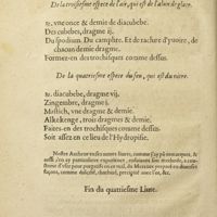 0200 - Page sans numérotation - De la maniere d'administrer les medicaments aux malades / Aux fiévres / En la goutte / Au jaulnisse / En l'hydropisie / En la contracture / Aux ulceres