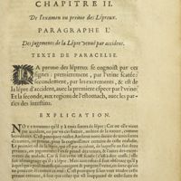 0120 - Page 63 - Chapitre II. De l'examen ou preuve des lépreux. Paragraphe I. Des jugements de la lépre venuë par accident