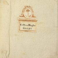 - Ex Dono "Magistri Gillet 1765" au contre-plat supérieur. (i.e. Jean-Daniel Gillet. Erreur de foliotation : f. 119-120