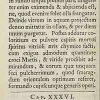 0071 - Page 36 - Cap. XV. Alius modus faciendi ferrettum / Cap. XVI. Ut crocus ferri, vel ut vulgo dicitur, Martis fiat, tingendo vitro