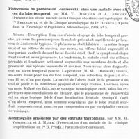 0117 - Page 71 - Société de neurologie de Paris. Séance du 6 juillet 1939. Un syndrome parkinsonien peut-il reconnaître la maladie de Heine-Medin comme étiologie ? A propos d'un cas de poliomyélite antérieure aiguë avec narcolepsie, suivie peu après d'un syndrome parkinsonien, par MM. Th. Alajouanine, H. Mignot et P. Mozziconacci / Deux syndromes oto-neuro-oculistiques d'origine congénitale. Leurs rapports avec les phacomatoses de van der Hoeve et autres dysplasies neuro-ectodermiques, par MM. F. Thiébaut, J. Lemoyne et L. Guillaumat0117 - Page 71 - Société de neurologie de Paris. Séance du 6 juillet 1939. Un syndrome parkinsonien peut-il reconnaître la maladie de Heine-Medin comme étiologie ? A propos d'un cas de poliomyélite antérieure aiguë avec narcolepsie, suivie peu après d'un syndrome parkinsonien, par MM. Th. Alajouanine, H. Mignot et P. Mozziconacci / Deux syndromes oto-neuro-oculistiques d'origine congénitale. Leurs rapports avec les phacomatoses de van der Hoeve et autres dysplasies neuro-ectodermiques, par MM. F. Thiébaut, J. Lemoyne et L. Guillaumat