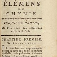 0017 - Page 1 - Cinquième partie, où l'on traite des différentes espèces de sels. Chapitre premier : Des sels en général