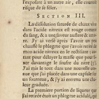 0190 - Page 178 - IIIe dissertation : Histoire des phénomènes que présente la dissolution de la chaux vive dans l'acide nitreux, avec les expériences entreprises pour les découvrir. Section I