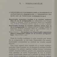 0144 - Page 142 - X. - Syringomyélie. L'hypertrophie d'un membre dans la syringomyélie (hypertrophie segmentaire) à topographie calquée sur un territoire syringomyélique