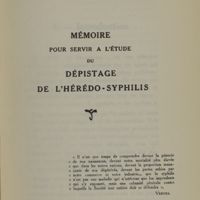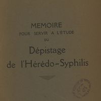 - Mémoire pour servir à l'étude du dépistage de l'hérédo-syphilis