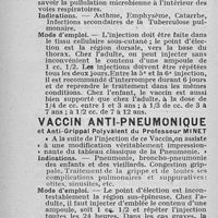 0502 - Page 462 - Vaccin anti-asthmatique du Professeur Minet. Vaccin anti-pneumonique et anti-grippal polyvalent du Professeur Minet