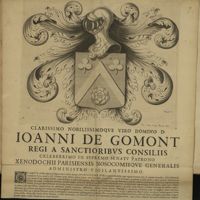 [Dédicace] Clarissimo Nobilissimoque Viro Domino D. Joanni De Gomont Regi A Sanctioribus Consiliis Celeberrimo In Supremo Senatu Patrono Xenodochii Parisiensis Nosocomiique Generalis Administro Vigilantissimo.