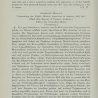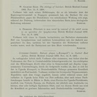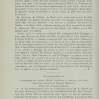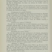 0696 - Page 665 - Revue des periodiques. Géographie médicale. Materia Medica, Pharmacy and Therapeutics of the Cree Indians of the Hudson Bay Territory, by R Strath M. D. Fergus Falls Minn, St. Paul Medical Journal, 1903 (C. Bakker) / W. Gilmore Ellis. The etiology of heri-beri. British Medical Journal 1903 (Scheube) / A. Primrose. Filariasis in man cured by removal of the adult worum in an Operation for lymphscrotum. British Medical Journal 1903 (Scheube) / Cuthbert Christy. Bubonic plague („Kaumpuli”) in Central Fast Africa. British Medical Journal 1903 (Scheubre) / Die Aetiologie der Schlafkrankheit (Scheube)