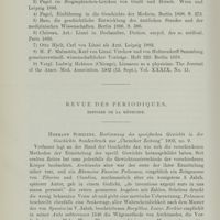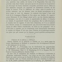 0112 - Page 94 - Revue bibliographique. I. Histoire de la médicine. Allemagne. Dr. Julius Jolly. Medicin. (Grundriss der Indo-arischen Philologie und Altertumskunde). Strassburg, J. Trübner, 1901. — Du même. Zur Quellenkunde der indischen Medicin. 2. I-tsing (Zeitschr. d. deutsch, morgenland. Gesellschaft) (Liétard) / Dr. Hans Weyermann. Geschichtliche Entwicklung der Anatomie des Gehirns. Inaugural-Dissertation. Würzburg 1901