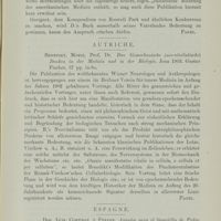 0633 - Page 602 - Revue bibliographique. I. Histoire de la médecine. Espagne. Don Luis Comenge y Ferrer, Apuntes para el biografia de Pedro Virgili, Barcelona 1893; Receptari de Mauresa (Siglo XIV) Barcelona 1899; Clinica egregia, Barcelona 1895; Euforia social, Barcelona 1902; La Medicina en el siglo, XIX (Revista de ciencias médicas, Barcelona 1901) (Max Neuburger) / Hollande. Discours sur l'évolution de la physiologie antique (Pergens) / J. J. Knap Gz., Eene inleiding in de praktijk voor den praktizeerenden geneesheer (Einführung in die Praxis für den praktisierenden Arzt) 1903. Amsterdam, F. van Rossen (Pergens)