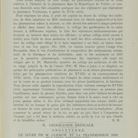 0116 - Page 98 - Revue bibliographique. I. Histoire de la médicine. Amérique (Etats-Unis d'). Quelques phtisiologues américains distingués par Henry Barton Jacobs / Angleterre. D’Arcy Poweb, F. R. C. S. Eng., F. S. A., (London). The Elizabethan revival of surgery. Reprinted from the „St. Bartholomew’s Hospital Journal” / Autriche. Robertus Töply. Anatomia Ricardi Anglici. (1242—1252) ad fidem codicis no. 1634 in biblotheca palatina Vindobonensi asservati. Vindoboniae 1902, avec une planche en phototypie (Pansier)