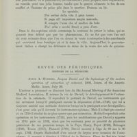 0064 - Page 46 - Revue des periodiques. Histoire de la médecine. Dr. C. Chauveau. Histoire des maladies du pharynx. Paris, Ballière et fils 1901 et 1902. Jonathan Wright. The nose and throat in medical history. Reprinted from the Laryngoscope, St. Louis Mo. U. S. A. 1901. Prof. Déjerine. Ouverture du cours d'histoire de la médecine. 1902. Progrès médical, 1902 (Guye)