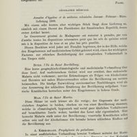 0637 - Page 623 - Revue des périodiques. Histoire de la médecine. Medical Library and Historical Journal, 1906 Brooklyn (herausgegeben von E. T. Huntington) enthält folgende Artikel (Pagel) / Géographie médicale. J. Brault. La fièvre ondulante à Alger. Arch. gén. de méd. 1903 (Scheube) / J. Brault. Le lupus chez les indigènes musulmans d’Algérie. S.-A. aus Compt. rend, du Congres des Soc. savant, en 1905, Sciences (Scheube) / J. Brault. Pathologie et Hygiène des indigènes musulmans d’Algérie. Alger, Adolphe Jourdan 1905 (Scheube)