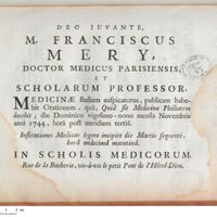 ![0001 - Page sans numérotation - M. Franciscus Mery […] Medicinae stadium auspicaturus, publicam habebit Orationem, quâ, Quid sit Medicina Philiatros docebit](https://numerabilis.u-paris.fr/iiif/2/bibnum:ms02322_ms02337ax09x0050:0001/square/200,/0/default.jpg)