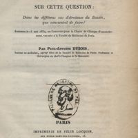 - Soutenue le 15 mai 1834, au concours pour la chaire de clinique d'accouchement, vacante à la Faculté de médecine de Paris