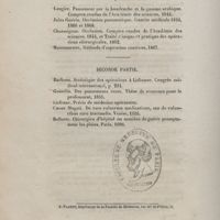 - Présentée au concours pour l'agrégation (Section de chirurgie) et soutenue à la Faculté de médecine de Paris le 24 mai 1869